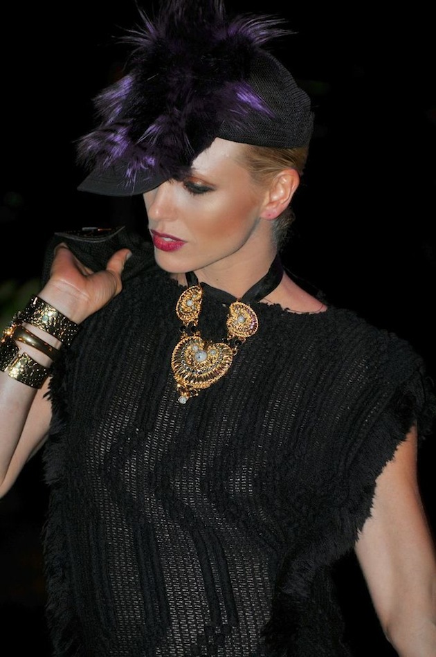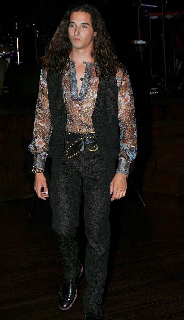 Antes de que comenzará el desfile de modas, el modisto me contó que su colección está inspirada en la onda gitana, pero no en una forma tradicional sino en el concepto de la gente que vive en otros países y se siente como gitana, como que no forma parte del lugar donde reside.