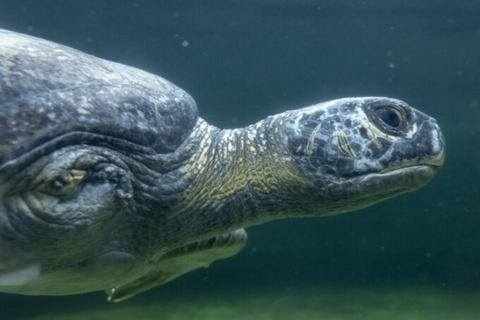 Rescued green sea turtle at Aquarium of the Pacific’s Molina Animal Care Center on March 27, 2025 in Long Beach, California. Crédito de la foto: Robin Riggs